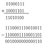 - при сложении или вычитании цифр в соответствующих разрядах необходимо следовать правилам двоичной арифметики: