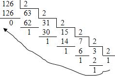 Осуществим перевод числа 12610 в систему с основанием 2: